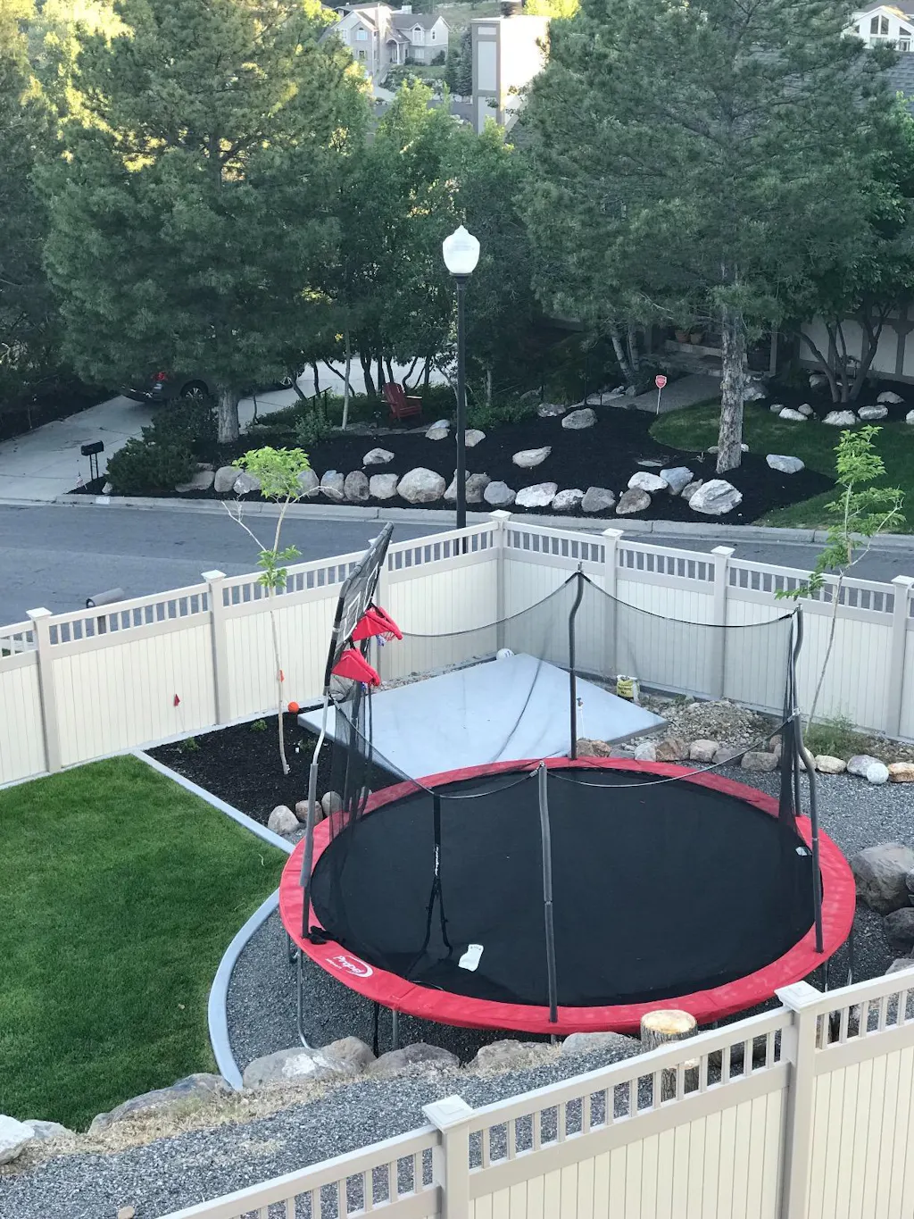 This trampoline includes a 3-year limited warranty on the frame and a 1-year limited warranty on the jump mat, springs, enclosure poles, and all other materials.